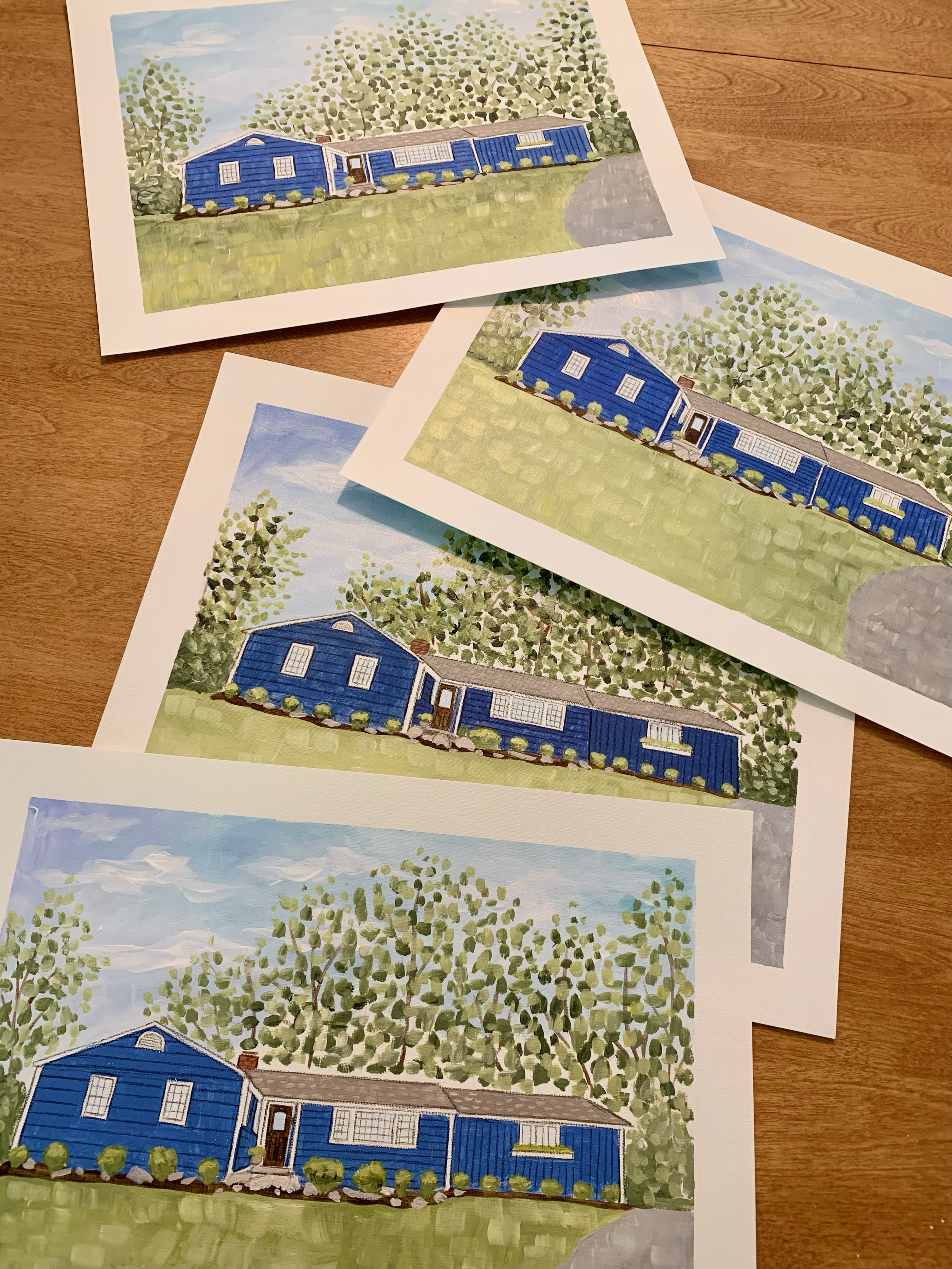 A custom house portrait is a wonderful way to memorialize the place where we live our lives…our homes. The process is simple, just send me a clear photo of the front of the house, I’ll do a sketch for your approval, then paint. I’m looking forward to painting one for you!